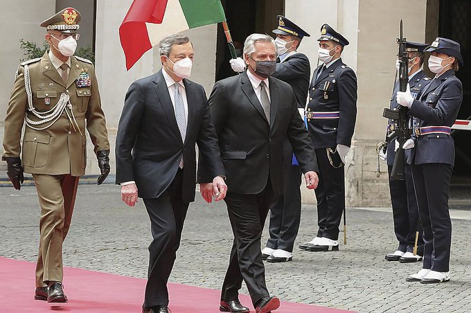 Con el primer ministro "se planteó lo deseado" por Fernández, añadieron los voceros, que agregaron se trató de la primera reunión personal con Draghi, lo que seguramente continuará con un "vínculo" como el que ya tiene con el portugués António Costa, el español Pedro Sánchez y el francés Emanuel Macron, los otros líderes europeos que visitó en la gira.