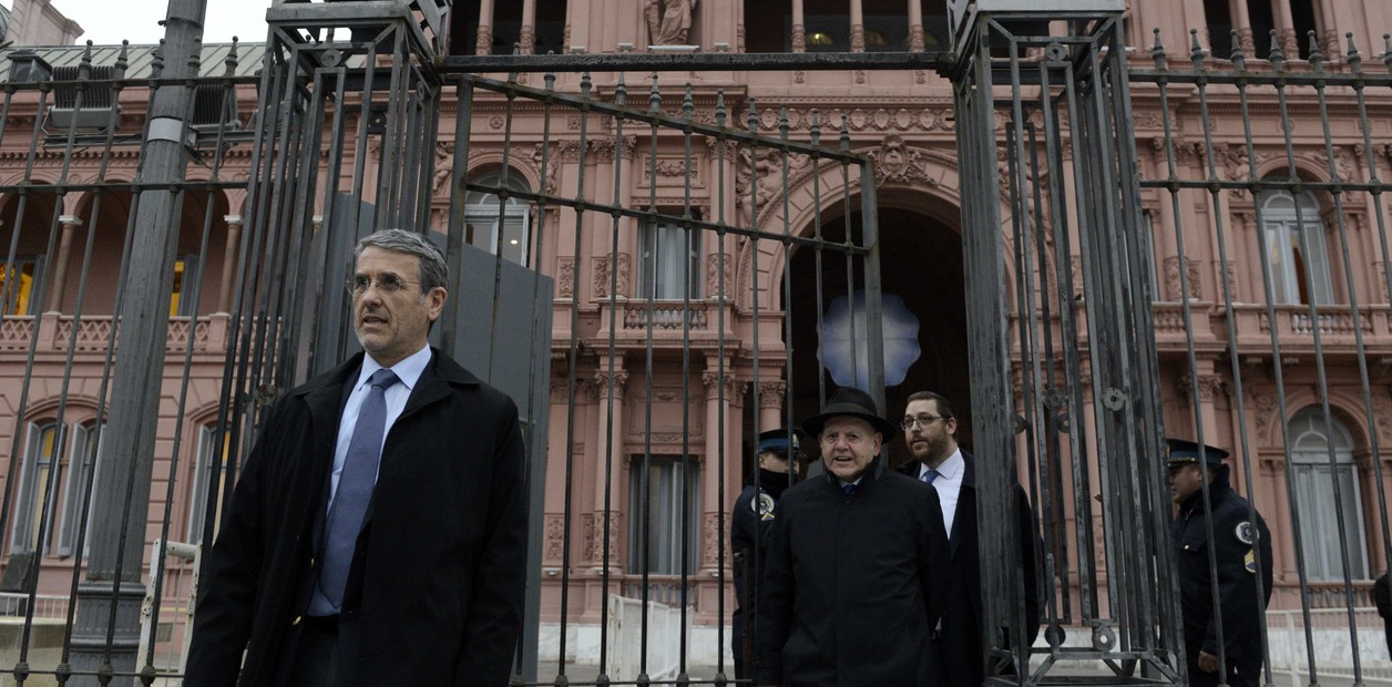Visita a la Rosada. El presidente de la mutual judía, Agustín Zbar, en una visita a Casa Rosada en julio del año pasado, con otras autoridades de la entidad judía.