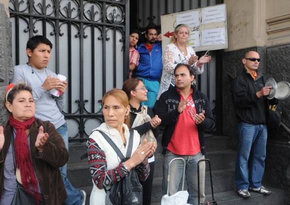 Miguel García, quien vive en un departamento ubicado en la misma esquina de la protesta, siguió su camino y tras volver en sus pasos, arrojó el diario al aire, golpeando a otra persona que cruzaba la calle.