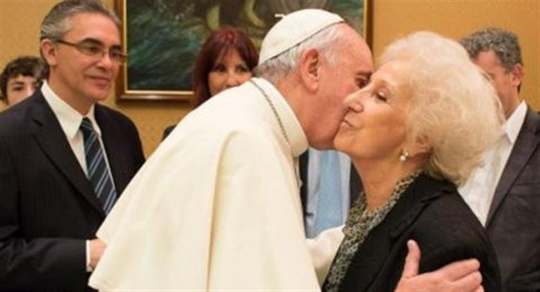 La última vez que Carlotto visitó al Pontífice argentino en la Santa Sede fue hace más de tres años, en noviembre de 2014, junto a su nieto recuperado, Ignacio Montoya.
