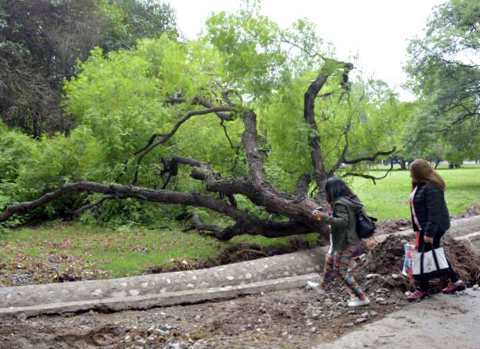 Las nuevas obras del parque General San Martín se vieron afectadas por el agua, varias acequias sufrieron trizaduras y algunas de ellas mostraron socavones en la zona de los nichos donde están ubicados los árboles. Algunos cayeron.