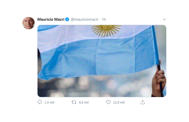Desde su cuenta oficial de Twitter, Macri publicó una foto de una bandera argentina que superó los más de 2.6 millones de “me gusta”. El ex presidente de Boca siempre que quiso comunicar su punto de vista utilizó sus redes sociales.