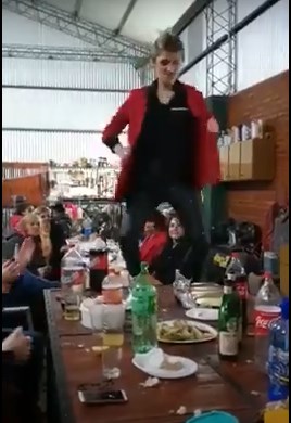En las imágenes difundidas, se llega a ver a una enfermera que baila sobre la mesa alrededor de la cual hay unas 15 personas. Los invitados comparten comida, bebidas alcohólicas y disfrutan de la música. Se los nota distendidos, riendo y aplaudiendo lo que está sucediendo.
