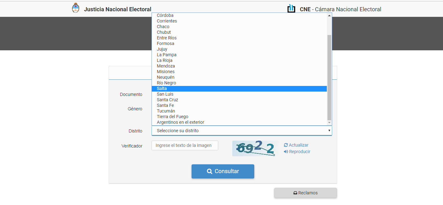 En la nómina, faltan dos provincias, San Juan y Santiago del Estero. Elegir ese ítem es necesario para acceder a la información. Por lo que, los sanjuaninos aún no pueden chequear dónde votan, a un mes de las elecciones primarias del 11 de agosto.