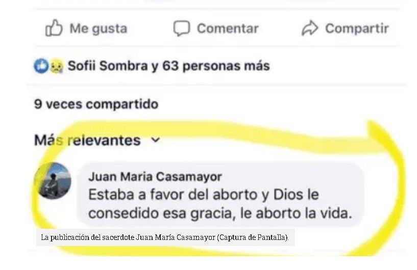 El sacerdote John Casamayor realizó la publicación como un comentario con su nombre y apellido en el Facebook oficial de la localidad de Unión, que mostraba un crespón negro y su dolor por la muerte de la funcionaria.