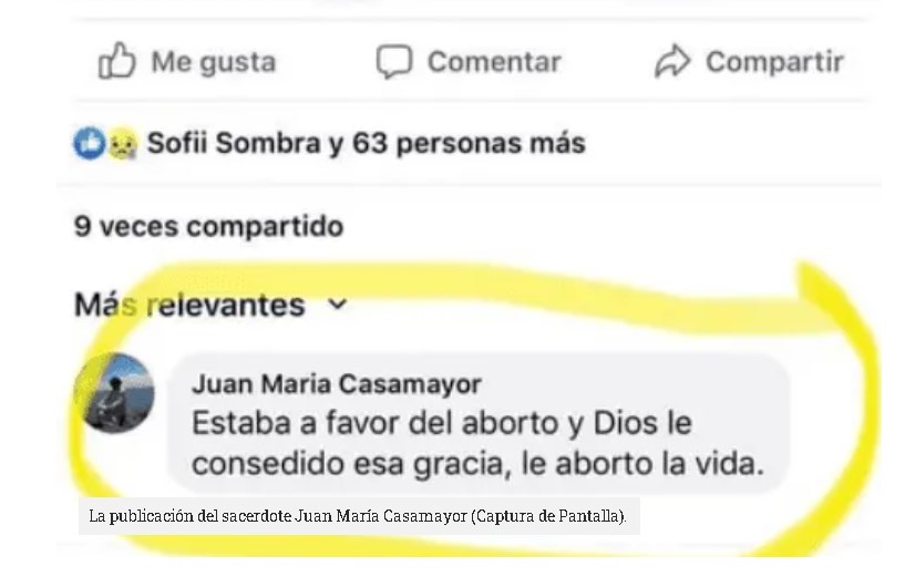 En el comentario publicado el sacerdote comete además un error ortográfico al escribir la palabra concedido con "s", "consedido" es lo que publica.