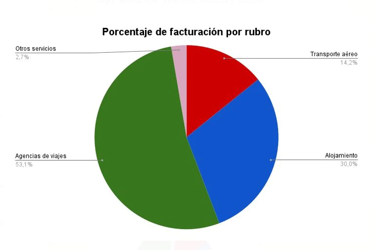 Del total de facturas cargadas el 53% corresponde a compras en agencias de viajes, 30% a alojamiento, 14% a transporte aéreo y 3% a otros servicios (gráfico)