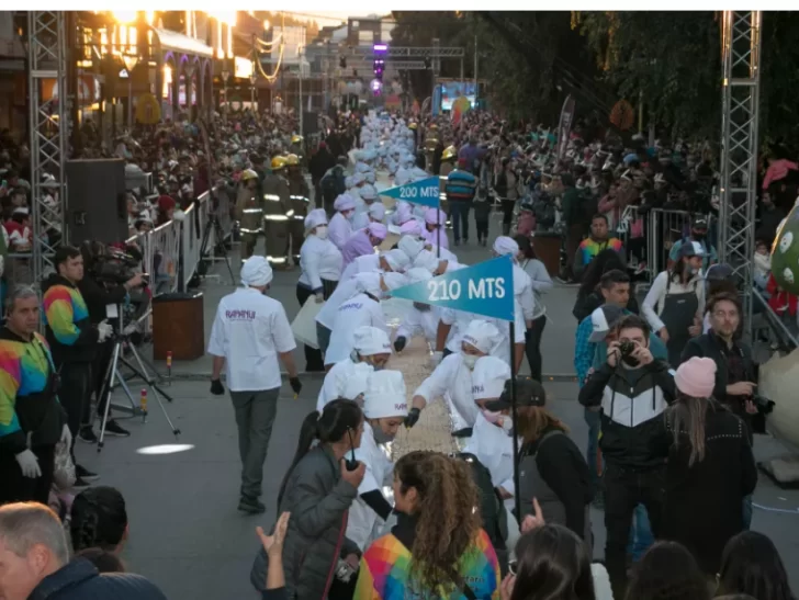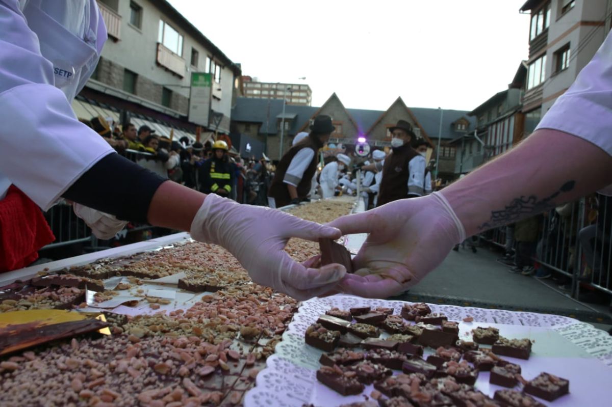 Miles de vecinos y turistas se reunieron en el centro de San Carlos de Bariloche para ver y probar la barra de chocolate "más larga del mundo", elaborada por 150 trabajadores que utilizaron 1.500 kilogramos de materia prima y lograron un producto de 210 metros de largo.