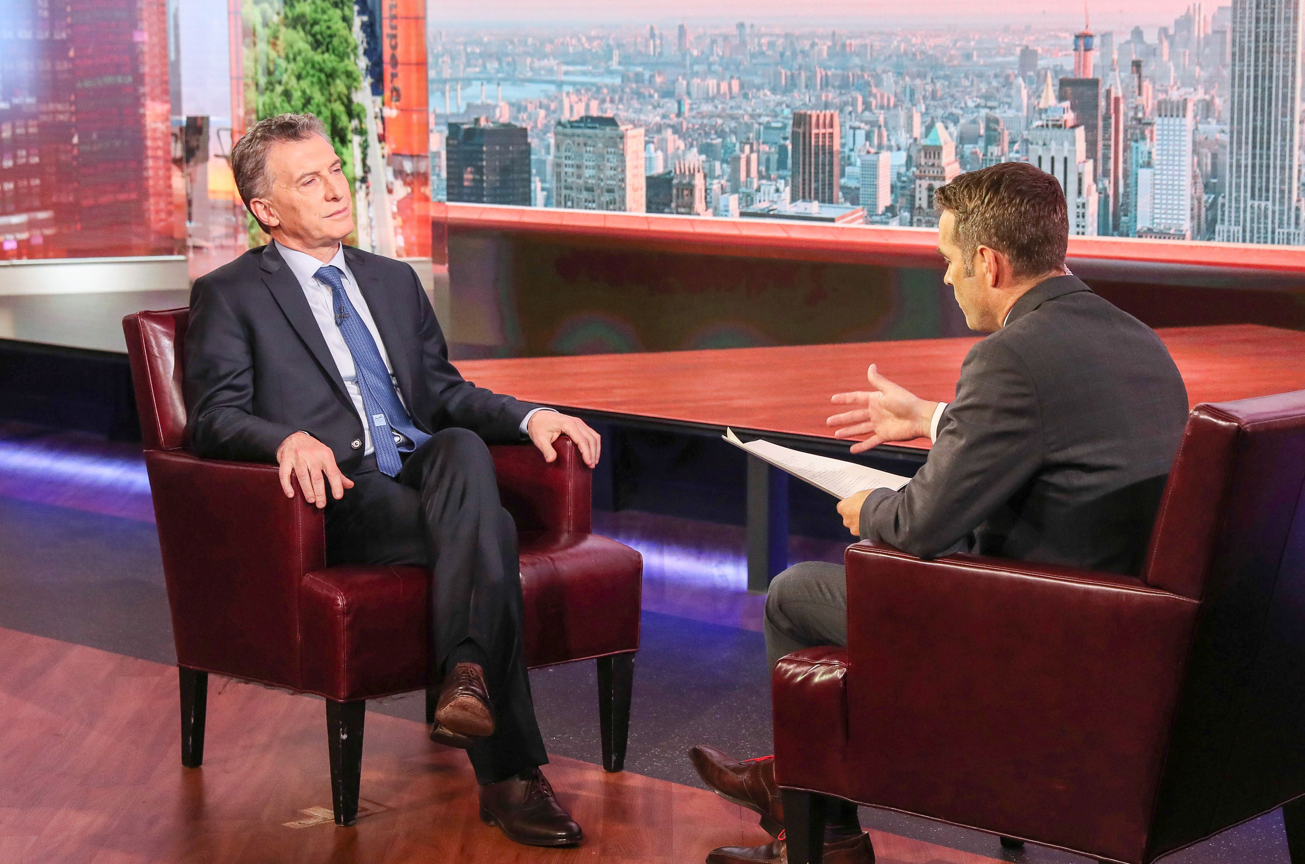 En Nueva York. El presidente Mauricio Macri en una entrevista al canal Bloomberg Televisión, de Nueva York, que le realizó el periodista Erik Schatzker.