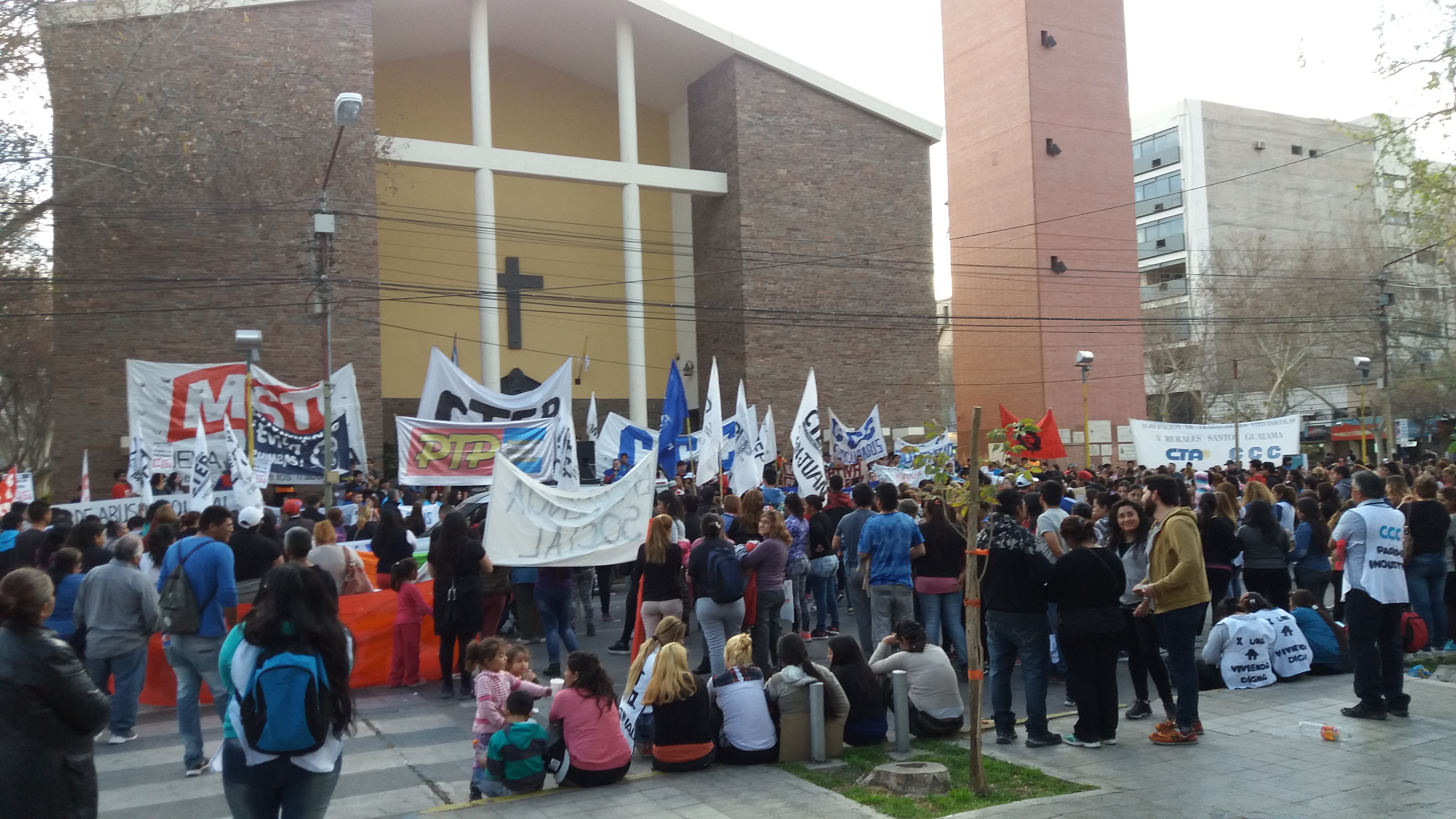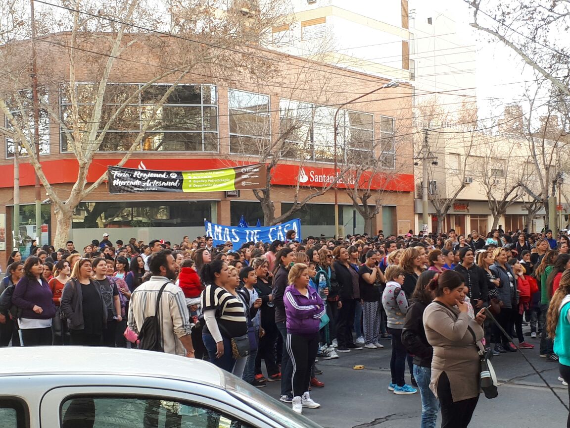 Luego de marchar por distintos puntos de Capital con cánticos y banderas contra Cambiemos, los manifestantes se instalaron sobre las escalinatas de la Catedral y realizaron un acto en que hubo varios referentes, como la candidata a senadora Mary Garrido.