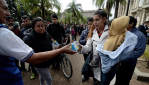 Santa Fe.- En protesta por los despidos en el sector lácteo que afectan a Santa Fe, miembros del gremio de Camioneros entregaron cajas de leche a la gente. La entrega se realizó en la plaza de la provincia, frente a la Casa de Gobierno, y unas 500 personas, en su mayoría de barrios carenciados, se acercaron para recibir su caja.