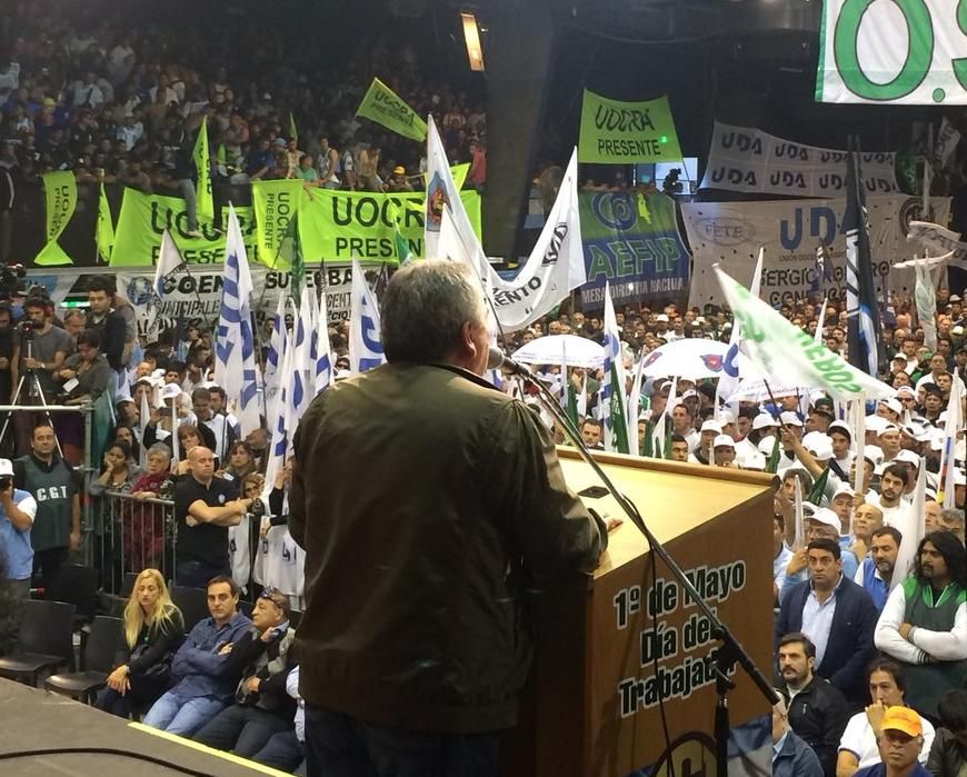 El consejo directivo de la CGT convocó a un acto en el estadio de Obras Sanitarias, en Núñez, el mismo escenario en donde se produjo la reunificación de las tres centrales y la elección del triunvirato que integran Juan Carlos Schmid , Héctor Daer y Carlos Acuña.