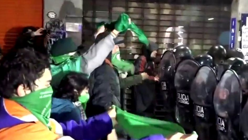 Mientras la mayoría de militantes se retiraba de la plaza en Buenos Aires, algunos activistas que habían llevado piedras en sus mochilas comenzaron a lanzarlas contra los uniformados que separaban las vigilias de pañuelos celestes y verdes en las inmediaciones del Congreso.