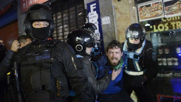 Tras las corridas y disturbios, la Policía detuvo a algunas personas. Las cámaras de televisión mostraron cómo, al menos, siete personas eran trasladadas en patrullas tras haber sido detenidas. Un vallado de Infantería mantenía alejado a un puñado de manifestantes que, con pañuelos verdes en alto, reclamaba a los uniformados la liberación de sus compañeros.