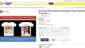 Bajo el anuncio "El Papa es argentino y vos tenés que tener su remera", un emprendedor se apuró a comercializar el merchandising papal a $150 la remera.