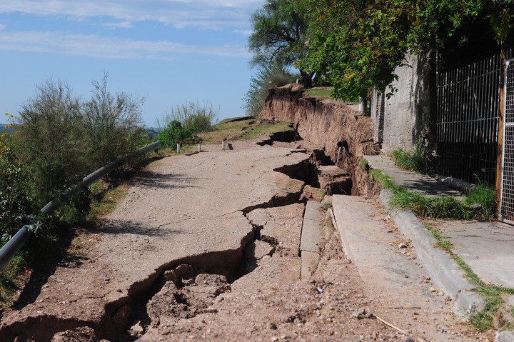 La barranca de Diamante va cediendo. La comparación de imágenes tomadas la semana pasada con las de este domingo muestran con claridad el descenso de una gran masa de barranca. Algo natural, explican los acostumbrados vecinos que saben que viven en un lugar que está prohibido por una ordenanza municipal de 1979.