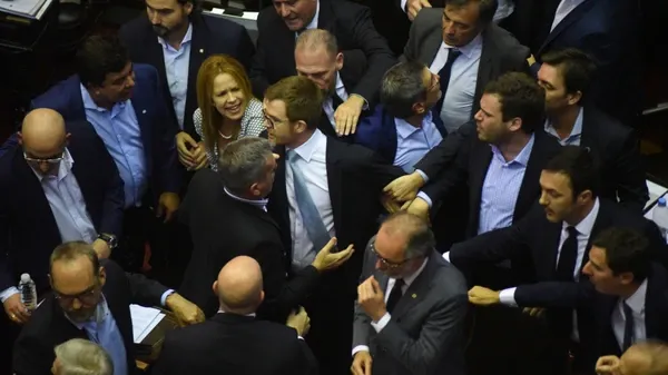En las primeras horas, con los incidentes afuera del Congreso, en el recinto hubo insultos, empujones y gritos.