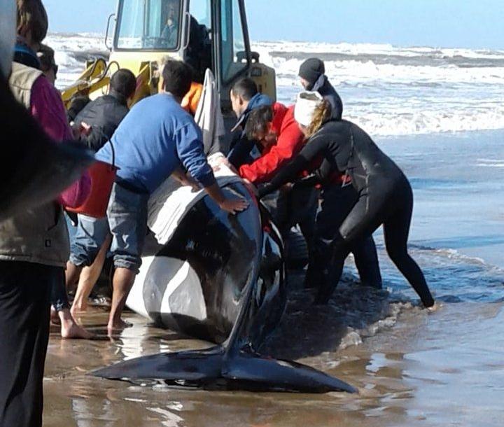 Las playas de Nueva Atlantis, en la Costa Atlántica, recibieron la visita inesperada de dos orcas este viernes. Una de ellas falleció mientras que la otra se encuentra encallada.