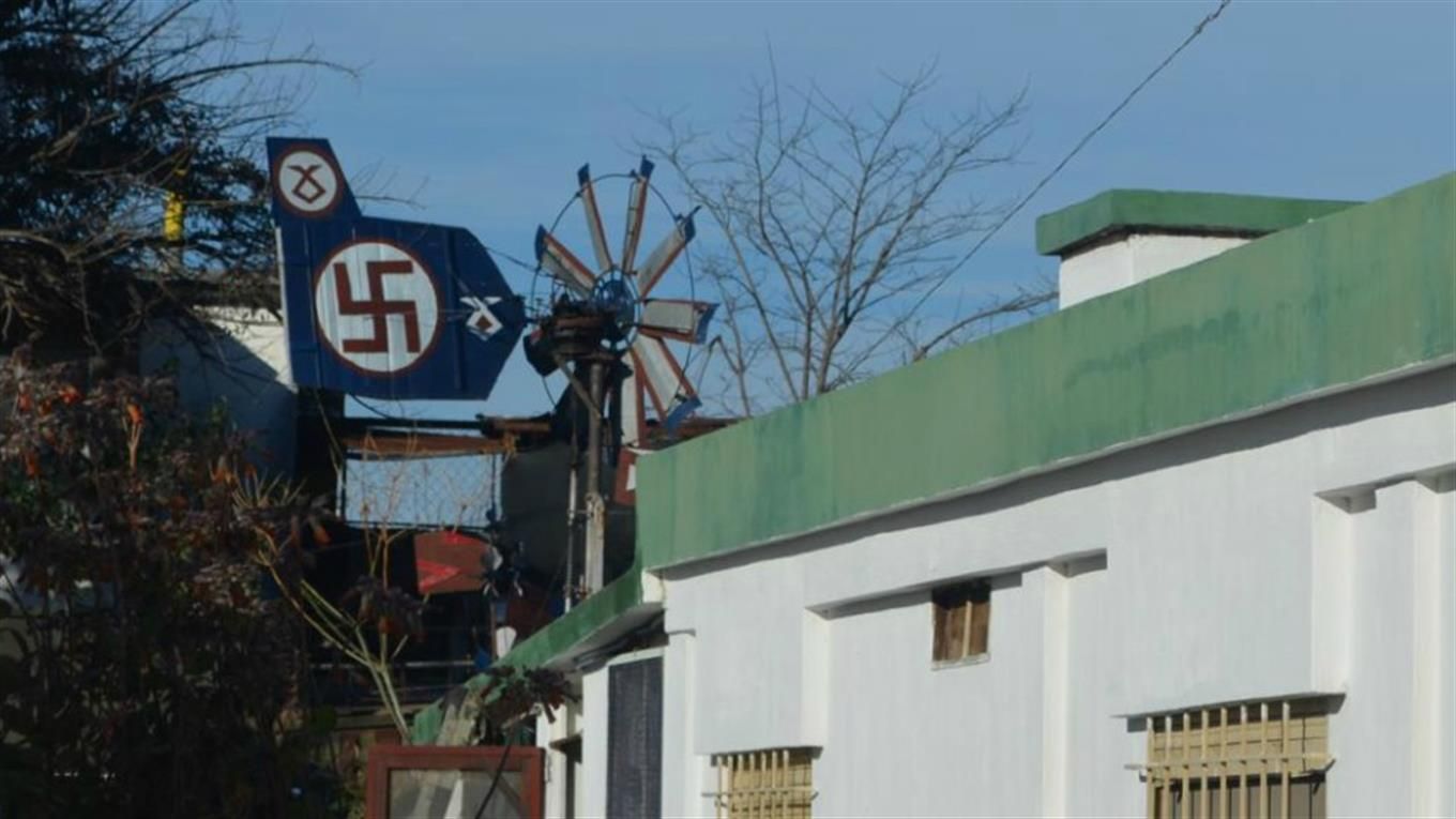 La vivienda, ubicada en un barrio de Alta Gracia, presentaba, en su patio trasero, un molino con una cruz esvástica.
