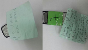 El teléfono tenía pegado un papel con una serie de instrucciones e indicaba que debía ser recargado con una determinada tarjeta prepaga y la sugerencia de ‘no llamar a otro número!!!’.