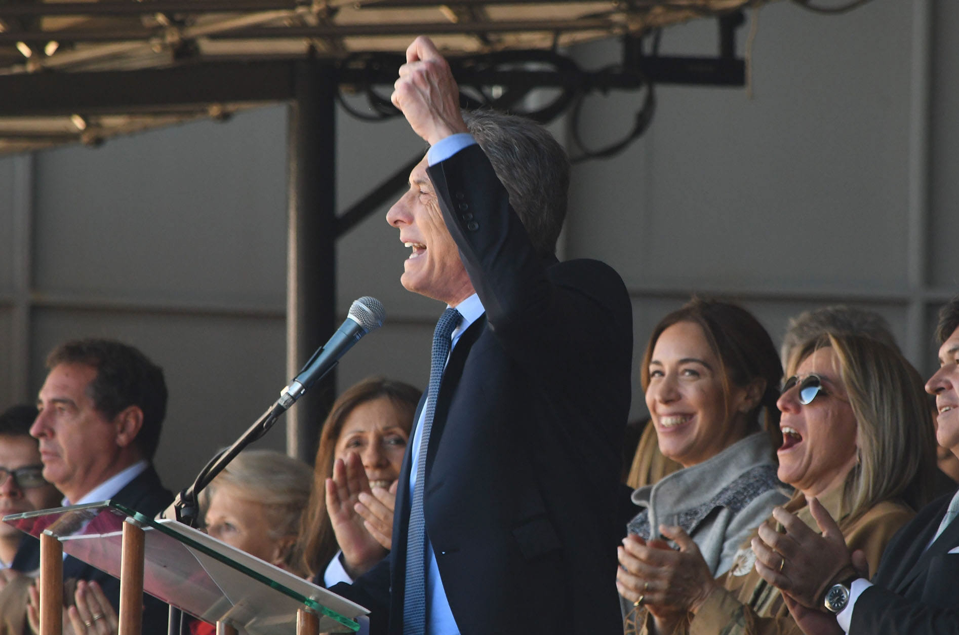 En el palco, y en primera fila, también estuvieron la gobernadora bonaerense, María Eugenia Vidal, a quien Macri definió en su discurso como "lo mejor que le pudo pasar a la provincia en los últimos 30 años", y el jefe de Gobierno porteño, Horacio Rodríguez Larreta, a quien calificó como un "gran hacedor".