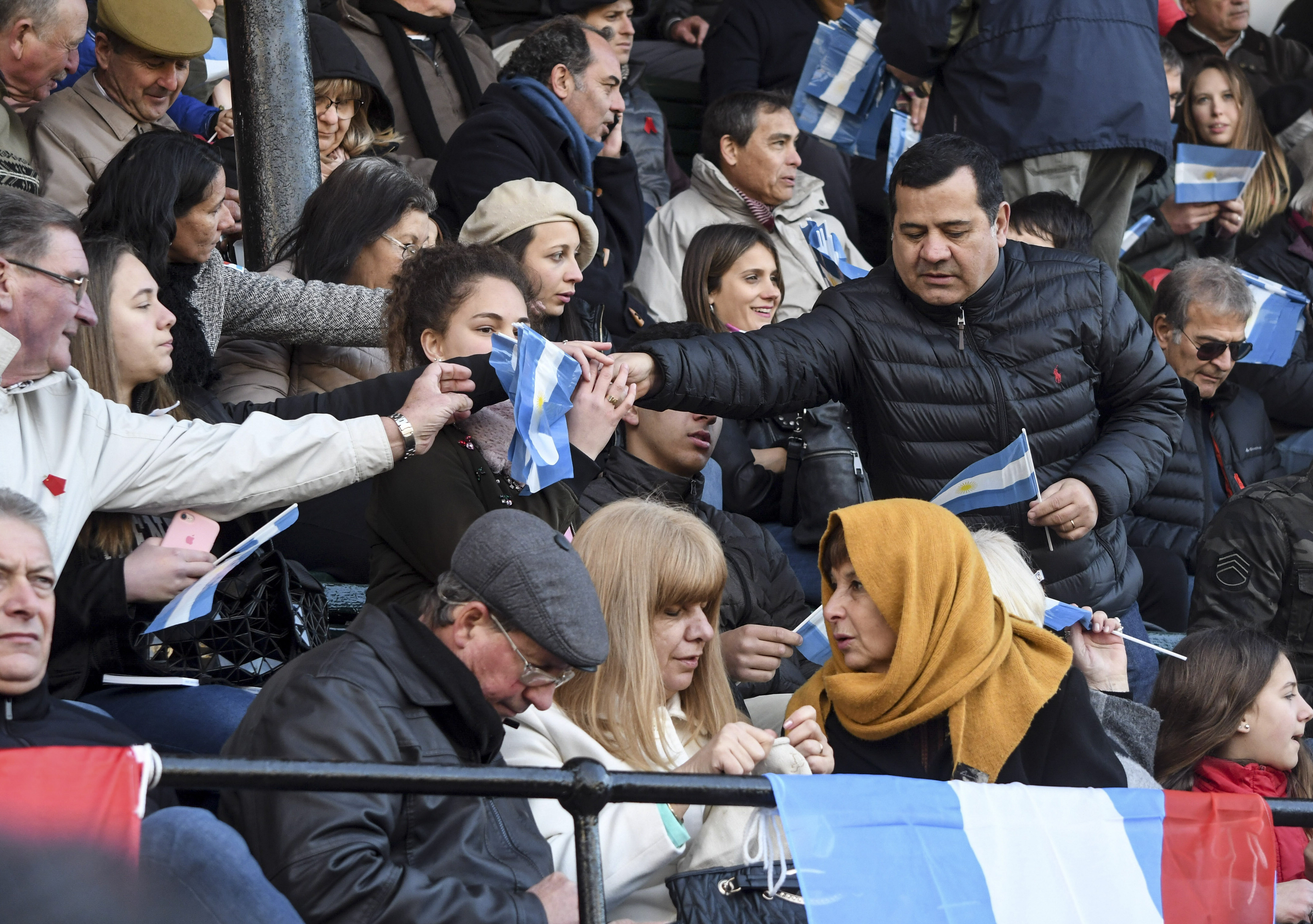 En celeste y blanco. El sentimiento patrio revivió en las gradas de La Rural. Los presentes agitaron banderitas con los colores de la Argentina.