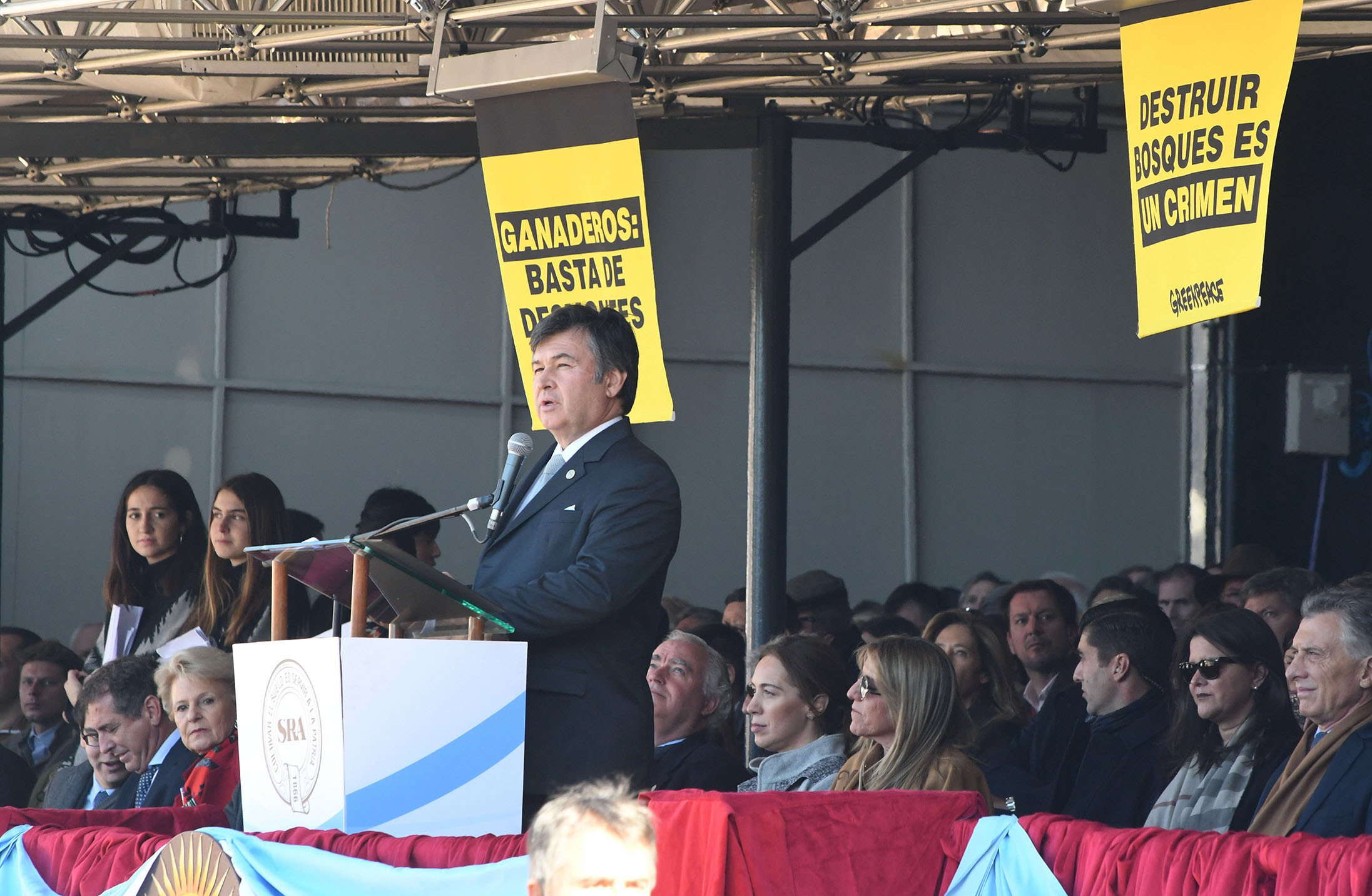 • Durante el acto se registraron incidentes cuando, en momentos en que el presidente de la Sociedad Rural, Daniel Pelegrina, pronunciaba su discurso, activistas ambientalistas de Greenpeace consiguieron desplegar dos banderas con las consignas "Ganaderos basta de desmontes" y "Destruir montes es un crimen".