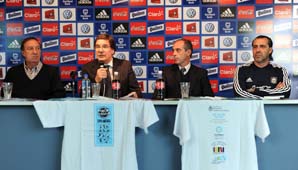En el encuentro, llevado a cabo en el predio de la AFA en Ezeiza, también estuvieron el secretario general de Selecciones de la AFA, Carlos Bilardo, y tres de los referentes del plantel que jugará el certamen: Javier Mascherano, Javier Zanetti y Esteban Cambiasso.