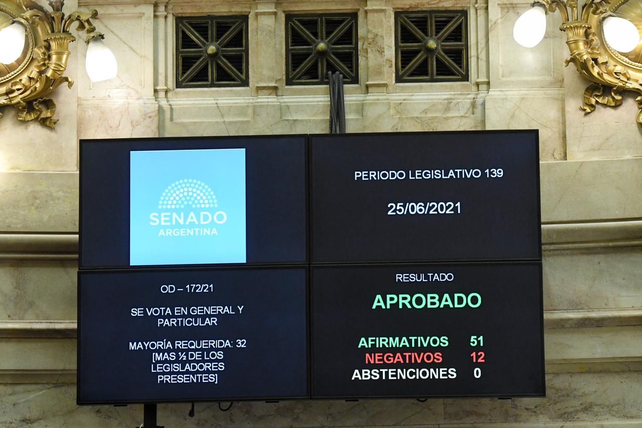 La iniciativa, que había sido aprobada a principios de mes en la Cámara de Diputados, recibió en el Senado 51 votos a favor y doce en contra.