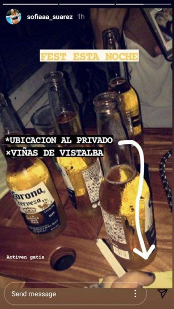 La invitación de Sofía Suárez generó indignación en la comunidad mendocina. Su padre manifestó estar al frente de la “lucha contra las fiestas clandestinas”. La joven proponía en una historia de Instagram: "Fest esta noche" y ofrecía brindar la ubicación por privado aclarando que era por la zona del barrio privado Viñas de Vistalba.