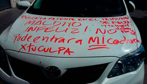Y le agregó en el costado del rodado: ‘Me quedé afuera por tu culpa infeliz’.