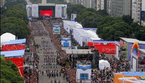 El desfile partió poco después de las 13 y recorrió el Paseo del Bicentenario desde la Avenida Belgrano, aunque muchas formaciones iniciaron su paso unas cuatro cuadras antes, y se extendió hasta el Obelisco, para seguir por Diagonal Norte y concluir en Plaza de Mayo, frente a la Catedral metropolitana.