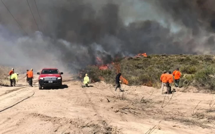 En el lugar trabajan brigadistas de Sierra Grande, General Conesa, San Antonio, Las Grutas, Viedma y personal del Servicio de Prevención y Lucha contra Incendios Forestales (SPLIF).