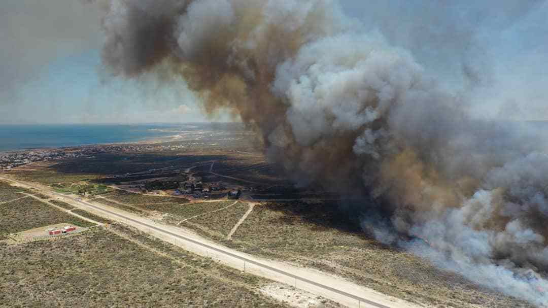 Por prevención evacuaron los barrios lindantes del acceso sur. Los evacuados van a ser trasladados al polideportivo municipal. Además realizan un corte en la Ruta 3 a la altura del acceso sur de Las Grutas.