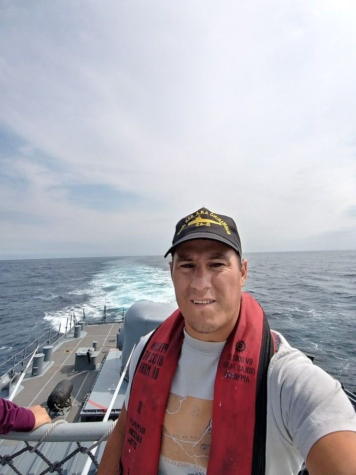 Raúl Britez es misionero, “de la hermosa tierra colorada”, dice él. Es el concuñado del sanjuanino Ricardo Gabriel Alfaro, cocinero y suboficial segundo. “La señora de Gaby es hermana de mi mujer”, detalla. “Todos los familiares querían subir a la corbeta. Pero solo había cuatro lugares. Y a mi me tocó por sorteo, salió mi nombre entre los de otros familiares”, cuenta Raúl, un hombre de modo afable: “ Yo ahora puedo decirlo: el mar no es un lugar fácil donde estar”.