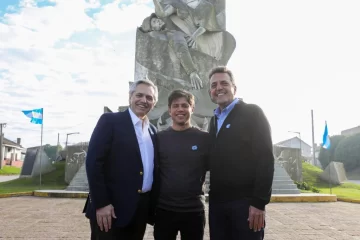 La primera foto de campaña juntos fue planificada, y se eligió como escenario el Monumento a la Gesta de Malvinas. Massa llegó antes, luego apareció Kicillof -que sigue de gira con su auto Clio- y el último fue Alberto Fernández, que venía desde Mar del Plata. Al postulante presidencial le pidieron que se saque la corbata para la foto.