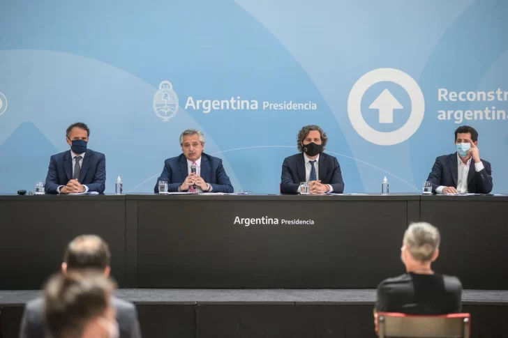 Previamente, el Presidente se comunicó -mediante videoconferencia- con los gobernadores de Córdoba, Juan Schiaretti; de Misiones, Oscar Herrera Ahuad, y de Río Negro, Arabela Carreras, además de intendentes de distintas localidades.