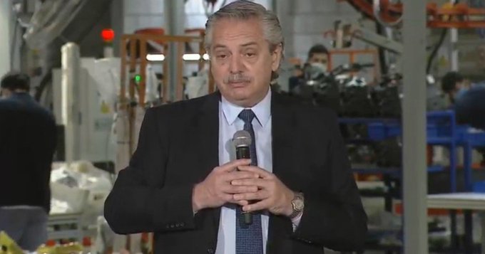 Desde allí, Fernández sostuvo que "el tiempo que vivimos, en medio de una pandemia reclama un voto de confianza de las empresas" y dijo que ve "con mucha tranquilidad que se ha podido retomar el trabajo en muchas fábricas".