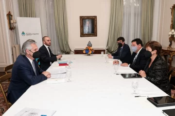 Tras disculparse por el retraso, ambos se dirigieron a uno de los despachos de la Embajada. Mientras que el Presidente está acompañado por el ministro de Economía, Martín Guzmán; y el secretario de Asuntos Estratégicos, Gustavo Beliz; Georgieva está escoltada por la subdirectora del Departamento para el Hemisferio Occidental del Fondo Monetario Internacional, Julie Kozack; y el segundo del FMI, Geoffrey Okamoto.