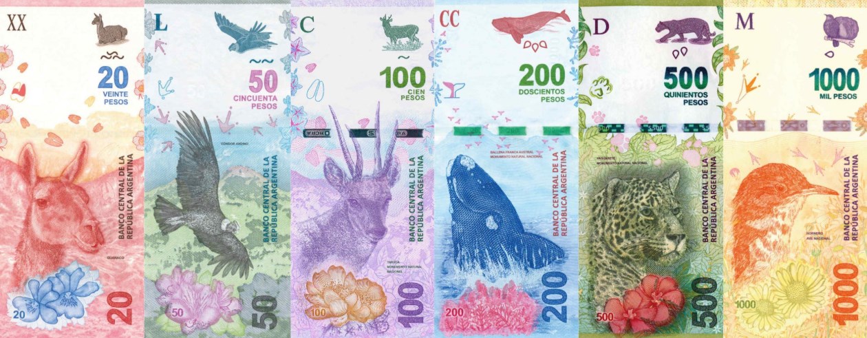 En los últimos años, los billetes en circulación de varias denominaciones fueron incorporando en su presentación imágenes de especies autóctonas. Existen en circulación varios motivos: el de $20 tiene en su anverso un guanaco, el de $50 un cóndor andino, el de $100 una taruca, el de $200 una ballena franca austral, el de $500 un yaguareté y el de $1000 un hornero.
