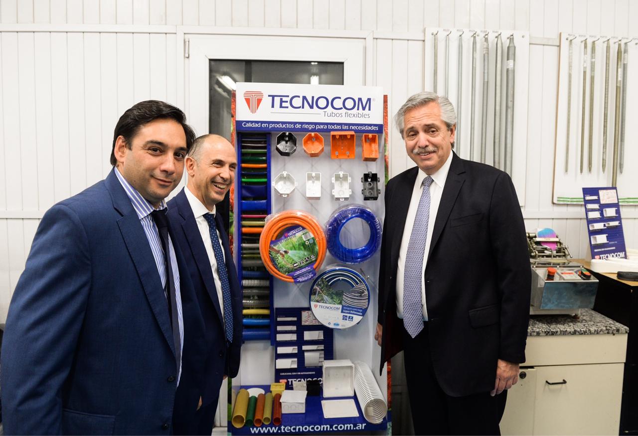 El presidente Alberto Fernández recorrió este jueves las instalaciones de Tecnocom, una PyME que fabrica productos de Policloruro de Vinilo (PVC) rígido y flexible, en Tres de Febrero.