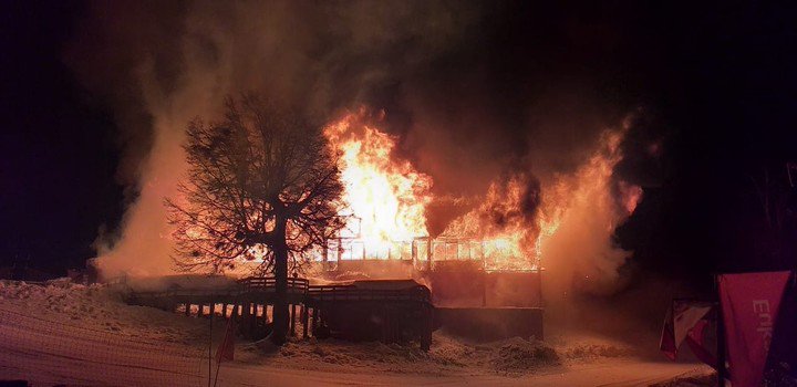 En la madrugada del viernes se registró un feroz incendio en la confitería Antulauquen, que está en la salida de la tele cabina en el centro de esquí Chapelco, de San Martín de los Andes.