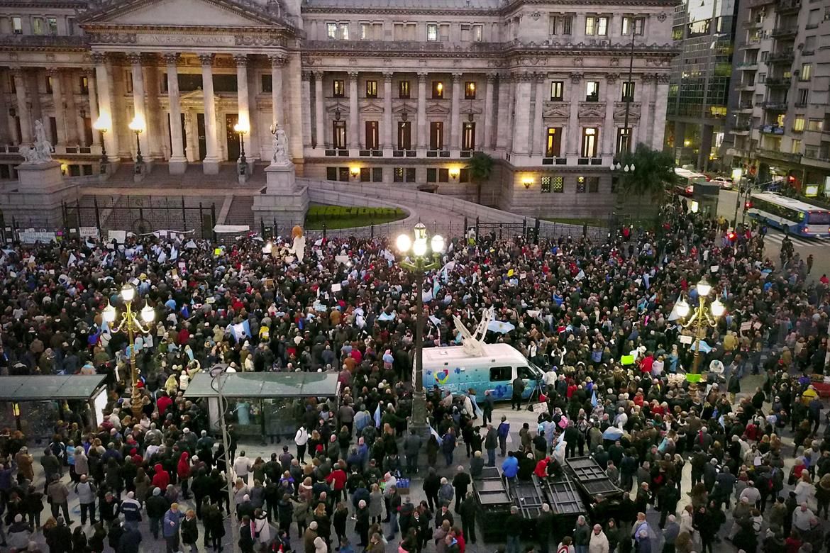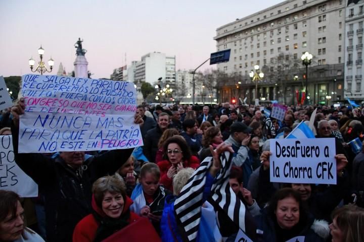 Una multitud manifestó esta tarde frente al Congreso Nacional y distintos puntos del país para exigir el desafuero de la senadora Cristina Kirchner en el marco de la causa de los " cuadernos de las coimas " que investiga el rol de la expresidenta, junto a otros exfuncionarios y empresarios, en una supuesta asociación ilícita donde se cobraban coimas y retornos millonarios a cambio de contratos de obra pública.