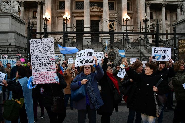 Frente al Congreso los manifestantes se congregaban para exigir, también, que se sancione la ley de extinción de dominio que permitiría recuperar bienes derivados de hechos de corrupción. En los carteles que llevaban los presentes se veían consignas contra la corrupción y contra el kirchnerismo.