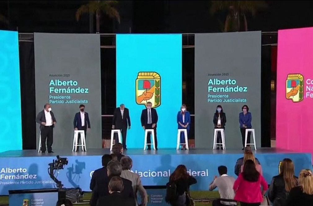"Nosotros íbamos con Cristina (Kirchner), con Sergio (Massa), con Máximo (Kirchner), con Axel (Kicillof), con José Luis (Gioja) y con todos los que estamos aquí para poner de pie al país y que pueda desarrollarse con trabajo genuino para cada habitante en cada rincón de la patria. Para eso llegamos. Para nosotros no es un debate cuál es la prioridad. La prioridad es desarrollarse y distribuir equitativamente. Esa es la prioridad. No heredamos la mejor Argentina, heredamos una Argentina muy dañada. Una Argentina que estaba en terapia intensiva y terminó contagiándose de Covid. Ante tanta desgracia tuvimos un acto inteligente, que fue el de estar unidos, estar juntos", manifestó Alberto Fernández.