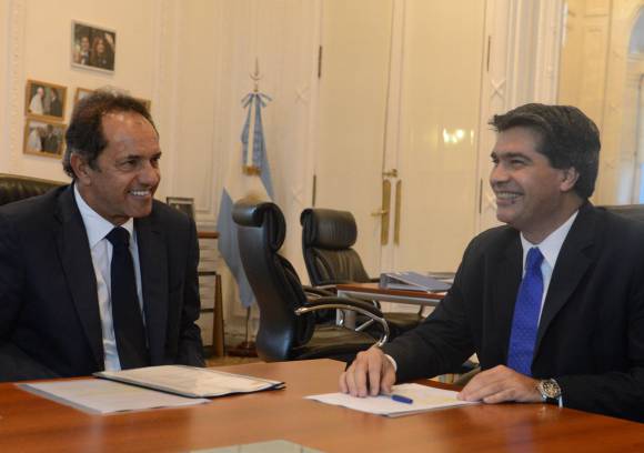 Con Scioli ya no hubo conferencia, quizá por lo avanzado de la noche. Ambos abordaron cuestiones relacionadas a la economía, el transporte, el medio ambiente, la seguridad y las obras públicas para el distrito bonaerense. Fuentes del sciolismo indicaron a DyN que la reunión fue ‘muy buena‘ y ‘se le contó a Capitanich lo que el gobierno bonaerense está haciendo en la provincia en materia de reducción del déficit y acerca del endeudamiento‘.