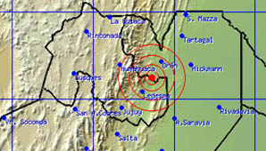 San Juan, 6 de noviembre.- El movimiento telúrico se registró a las 05.49 y se ubicó a 165 Km al nor-noreste de la capital de Salta, según informó el Instituto Nacional de Previsión Sísmica (Inpres). No se reportaron daños ni víctimas como consecuencia de este evento.