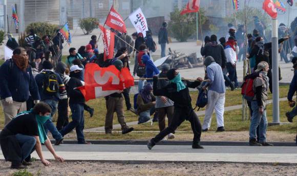Más de cinco mil personas ya se habían congregado hacia las 10 de la mañana en torno a la Legislatura para protestar por el acuerdo que incluirá a la estadounidense Chevron en el área Loma Campana. Pero la protesta se desmadró cuando un grupo volteó un vallado y comenzó a arrojar bolitas de cerámica y bombas Molotov.