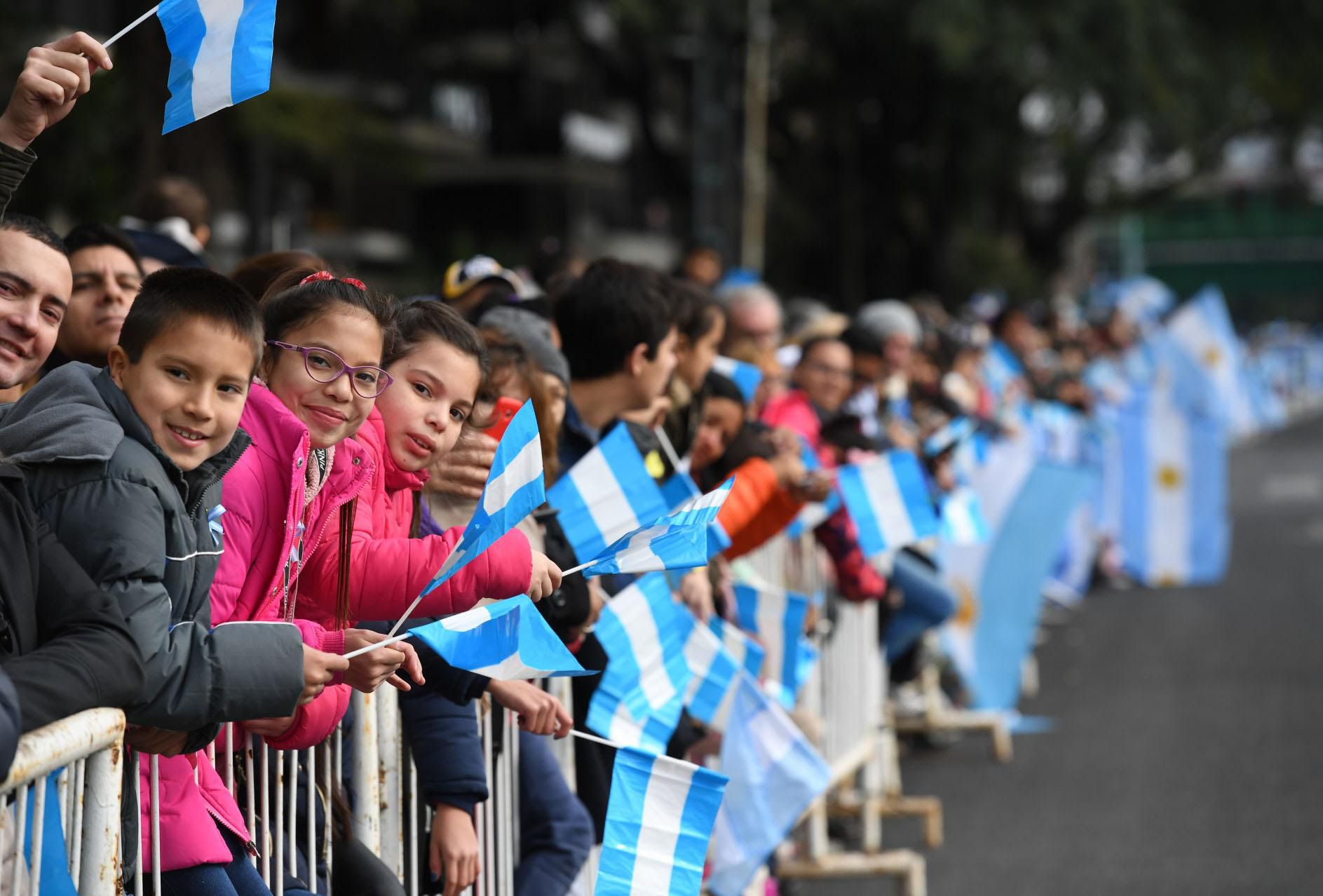 Protagonistas. Los chicos fueron el dato destacado de la jornada en el desfile. Agitaron todo el tiempo las banderas argentinas y se asombraron con el despliegue de tecnología.