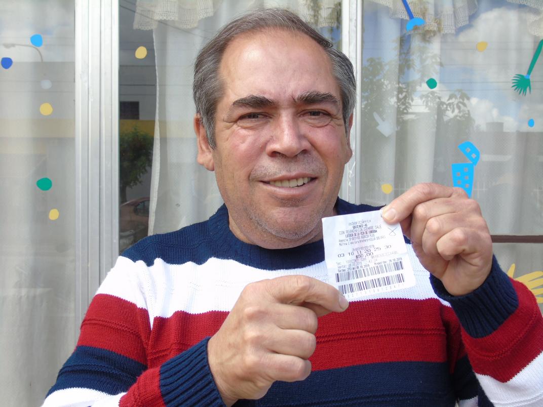 El hombre, con una sonrisa imposible de borrar por estas horas, acertó los números 10, 25, 11, 3, 30, 20 en opción "Tradicional" del sorteo del Quini 6.